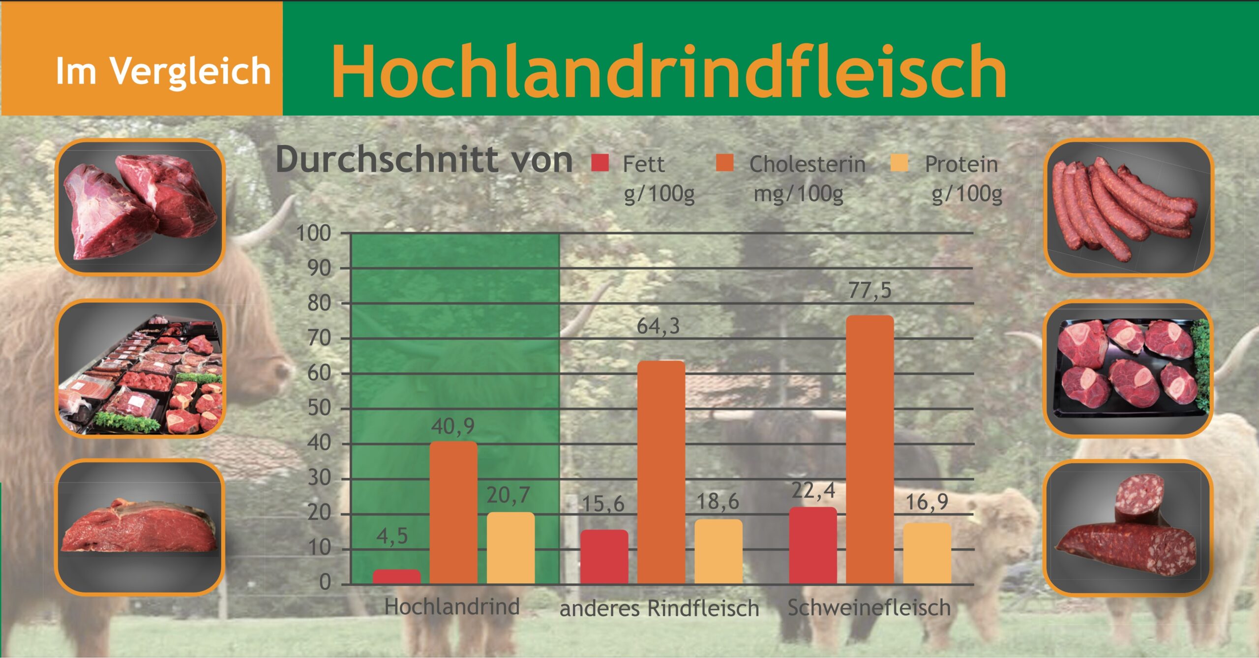 Wann haben Sie das letzte mal ein wirklich gutes, herzhaftes Stück Rindfleisch auf dem Tisch gehabt? Längst ist nicht mehr allein unter Spitzenköchen die Fleischqualität vom Hochlandrind hochbegehrt und vielgelobt.
